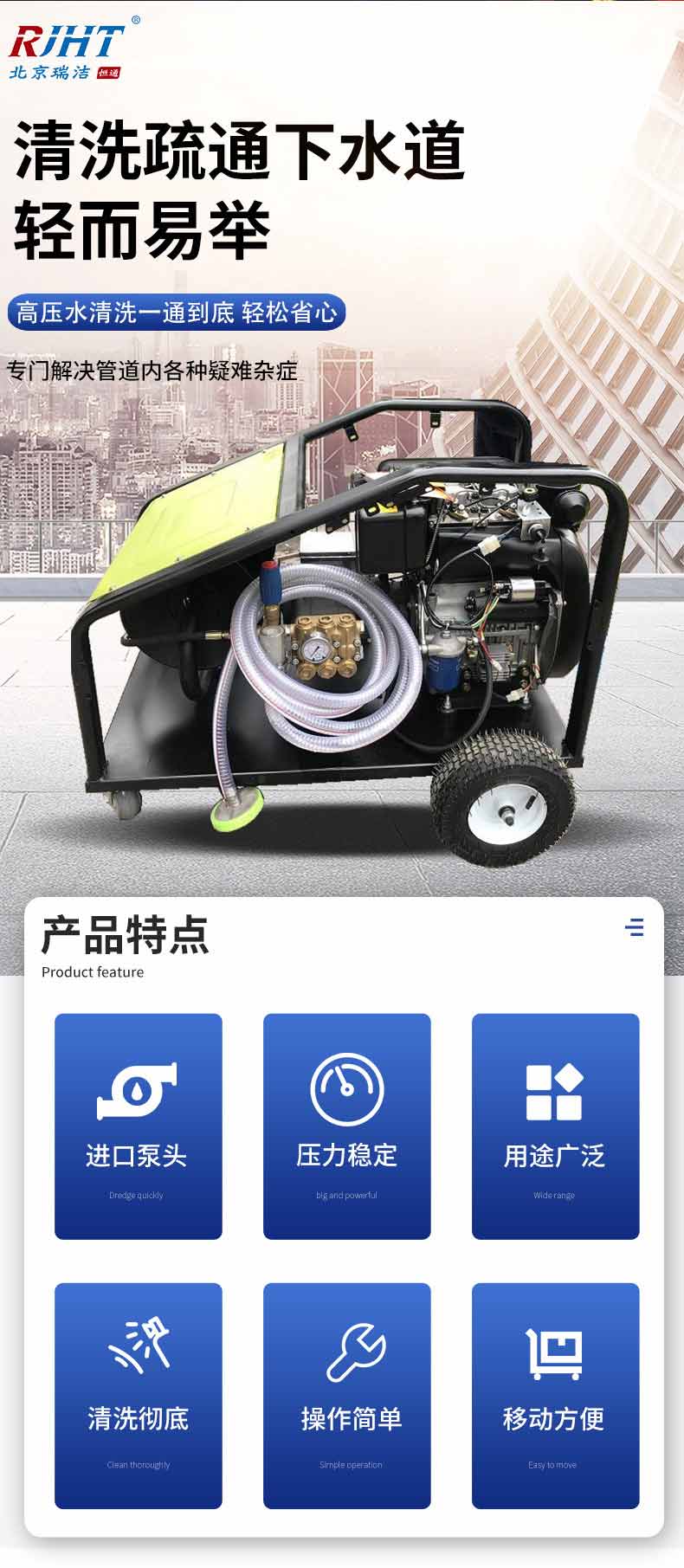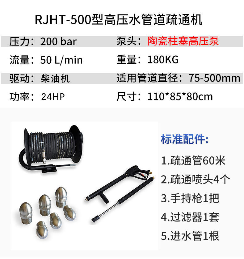 500型 柴油 高壓管道疏通機(jī)- ?型號(hào):RJHT-500