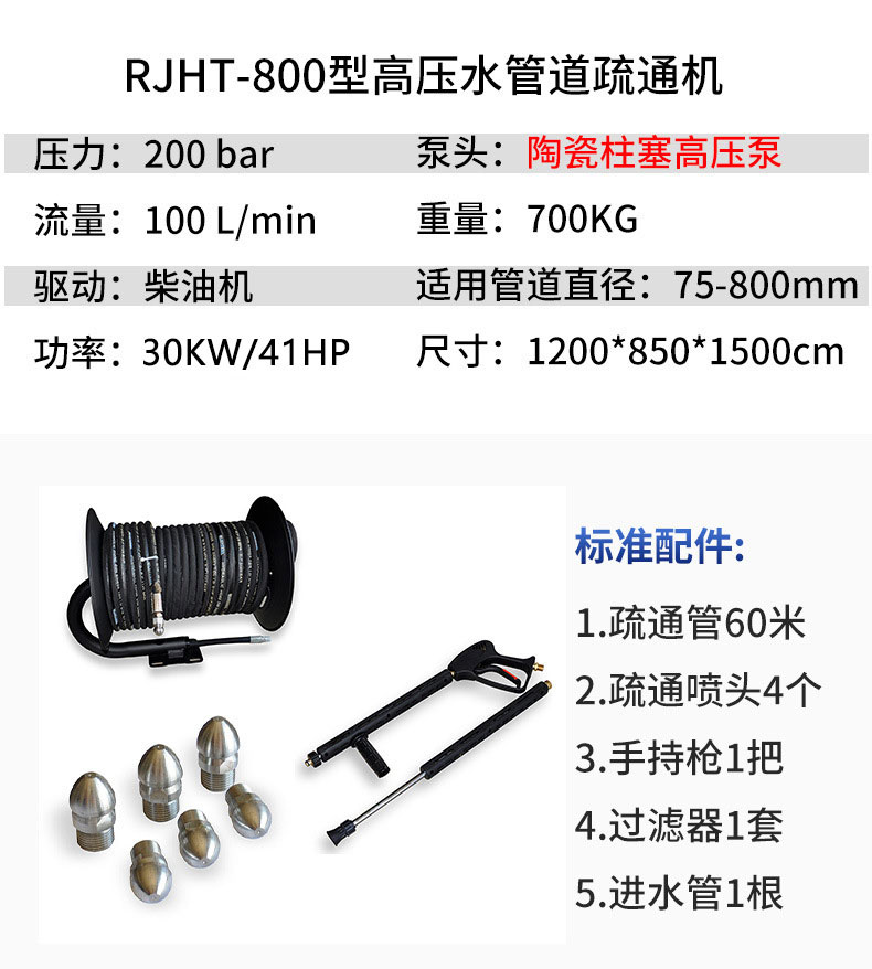 800型 41馬力柴油機(jī) 大型管道疏通機(jī)- ?型號:RJHT-800